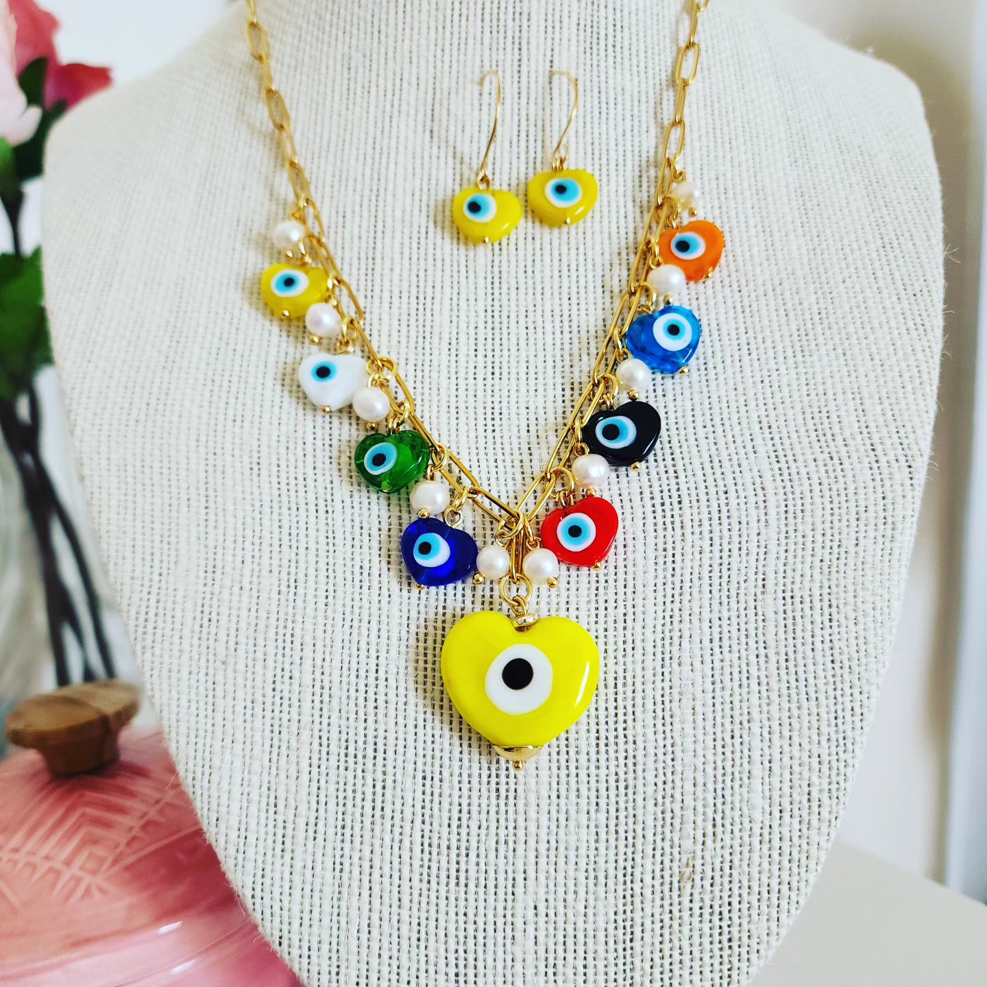 Collar Corazones de ojos colores