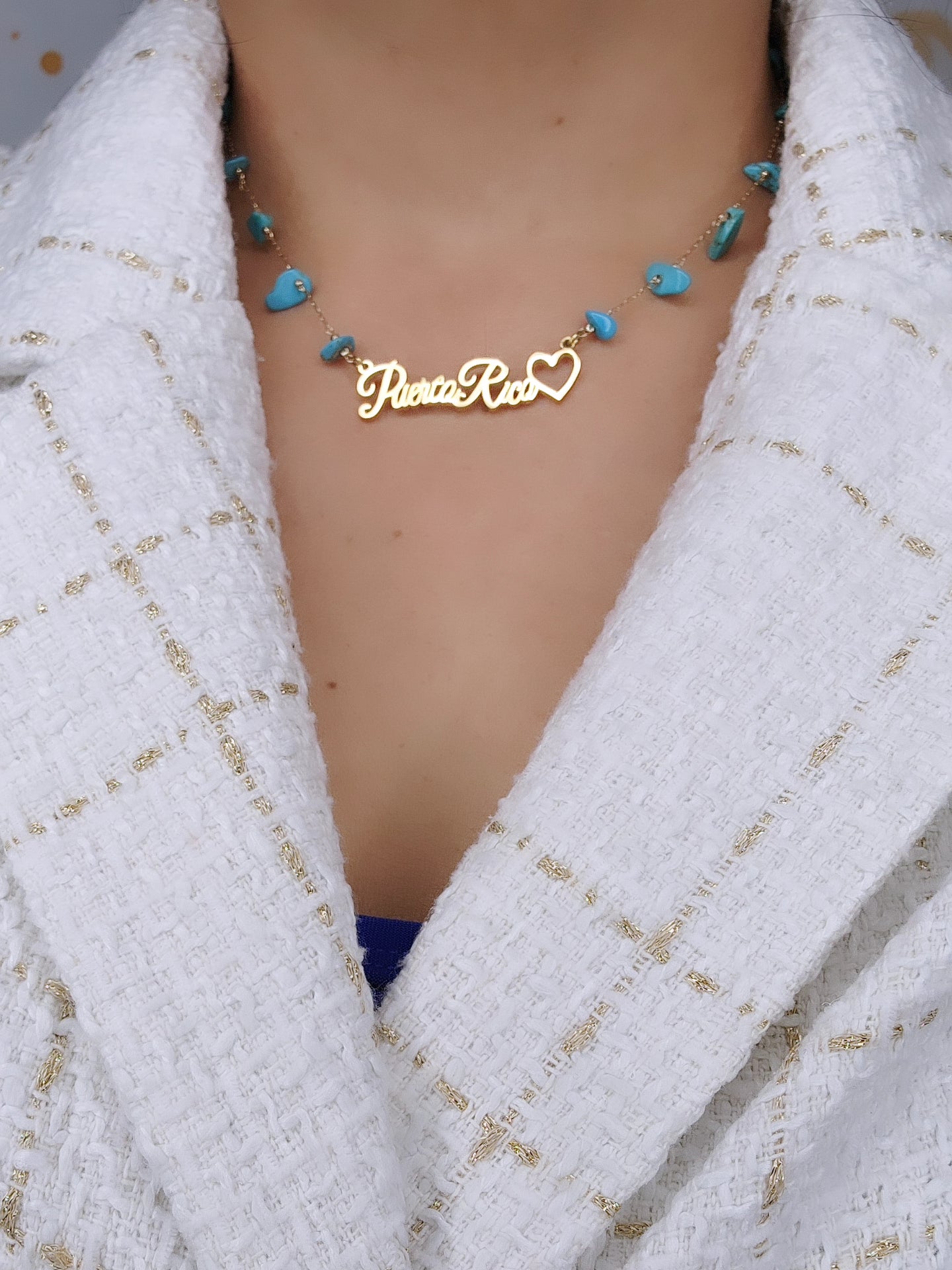 Collar de Puerto Rico con turquesa en stainless steel y baño en oro