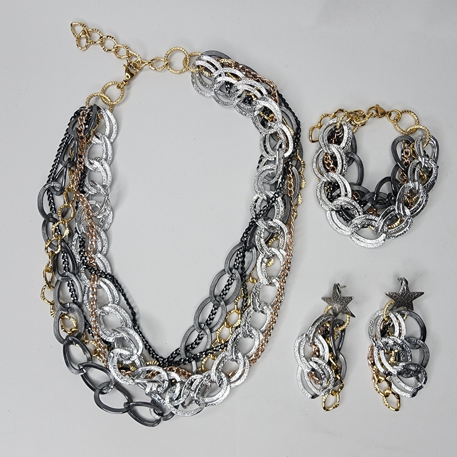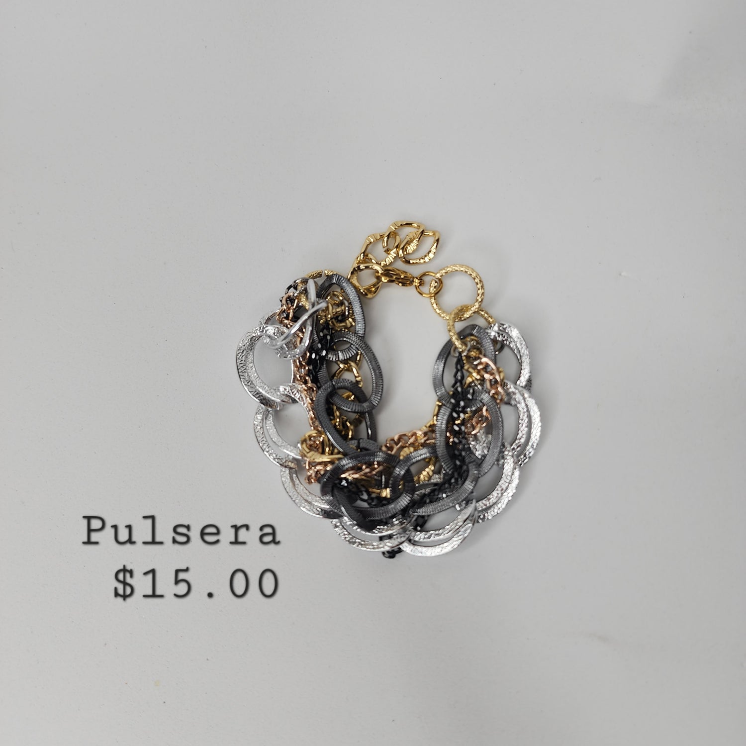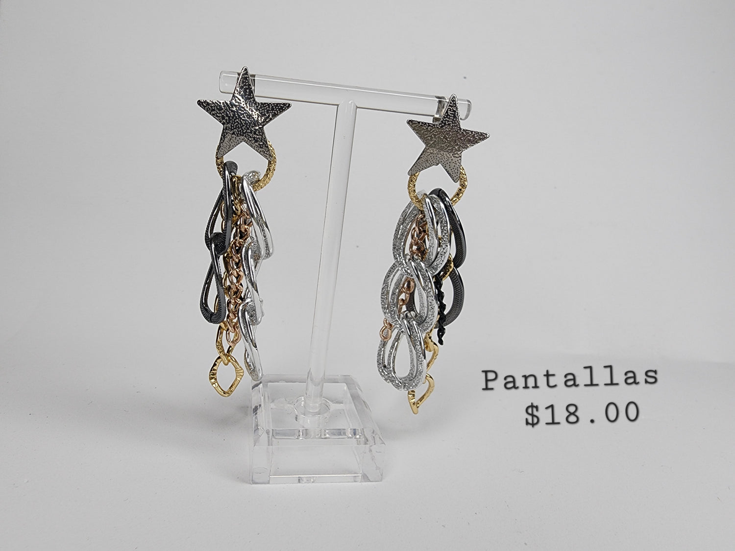 Mezcla de diferentes colores metálicos. Las cadenas son en aluminio. Son livianas y no cambian de color